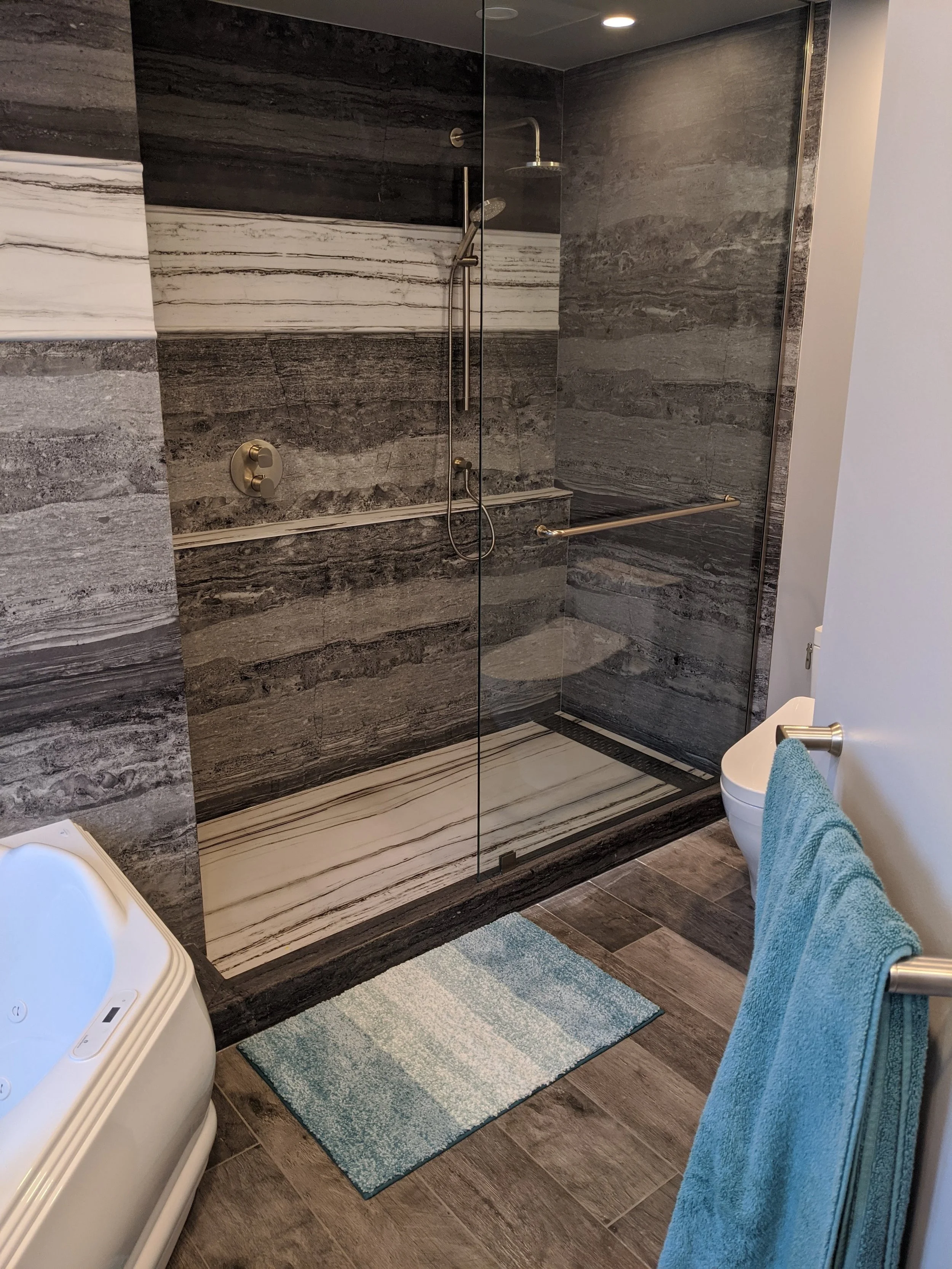 “Maximizing limited square footage through architectural innovation, by replacing a standard alcove tub with a seamless, glass-enclosed walk-in shower. We transform compact footprints into expansive retreats. This conversion features an integrated bench seat and a low-profile shower base, proving that even the most compact spaces can achieve an elite, spa-inspired atmosphere.